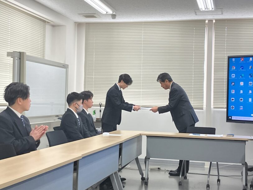 当日は、社長より配属辞令が交付され、役員および配属先上長との記念撮影を行いました。新たな仲間を迎え、社員一同、気持ちを新たにする機会となりました。
