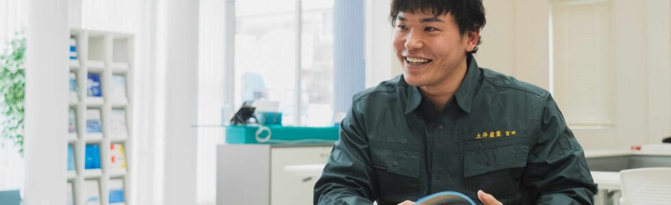 バイト先のボウリング場に土井産業のボウリング部の人たちがよく来ていて、何度も顔を合わせるうちに仲良くなり、就職の話をしたとき「うちに来ないか?」と声を掛けてもらったのがきっかけです。もともとはスポーツ関係の仕事に興味があったものの、土日に休めないのがどうしてもイヤで、土井産業の雰囲気や人の良さはわかっていましたし、これもご縁だなと思い入社しました。